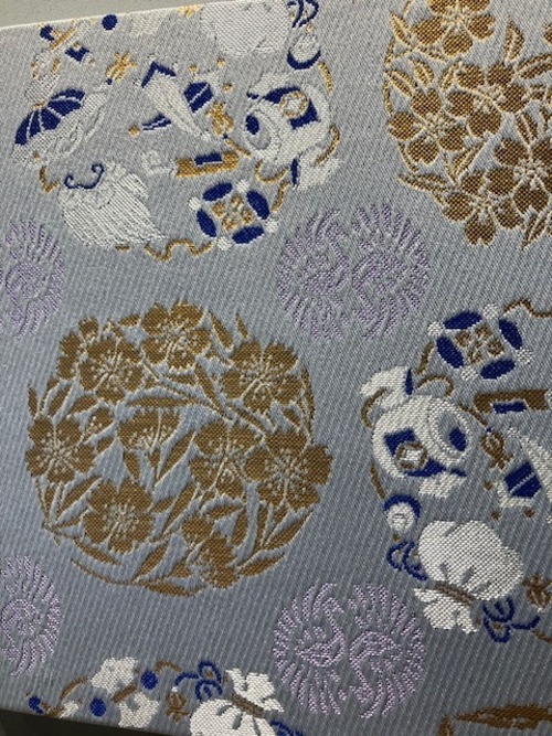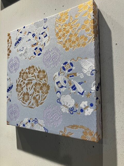 西陣織金襴 テキスタイルパネル 向かい鶴 宝尽し