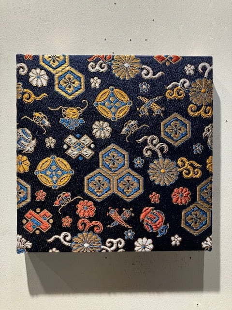 華やかな宝尽し柄が魅力の西陣織金襴テキスタイルパネルです。伝統的な技法を用いて織り上げられたこのパネルは、色鮮やかでユニークなデザインが特別な雰囲気を演出します。和室やリビングなど、お好きなスペースに飾ることで、和の情緒を一層引き立てることでしょう!
